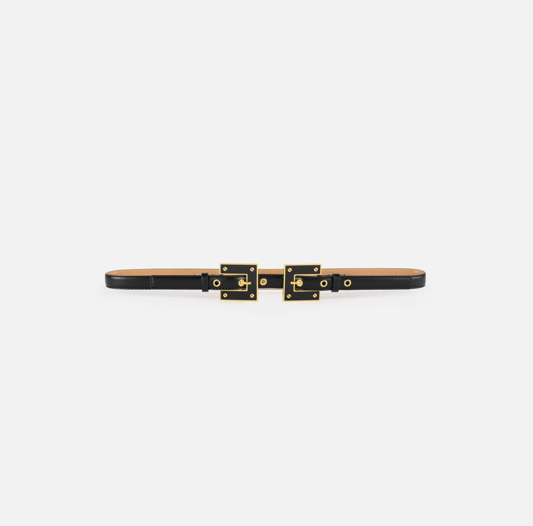 Fabricată dintr-un material sintetic de înaltă calitate, această centură este proiectată pentru a te încânta cu un aspect elegant și rafinat. Detaliul cu catarama dublă și limbă din metal auriu adaugă un strop de strălucire și distincție, conferindu-i o notă de lux fiecărei ținute.