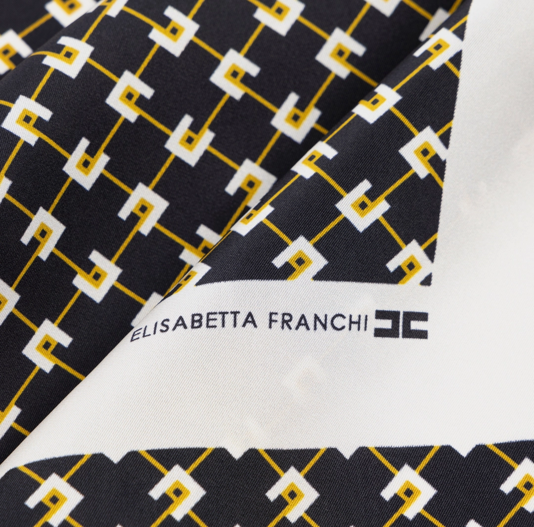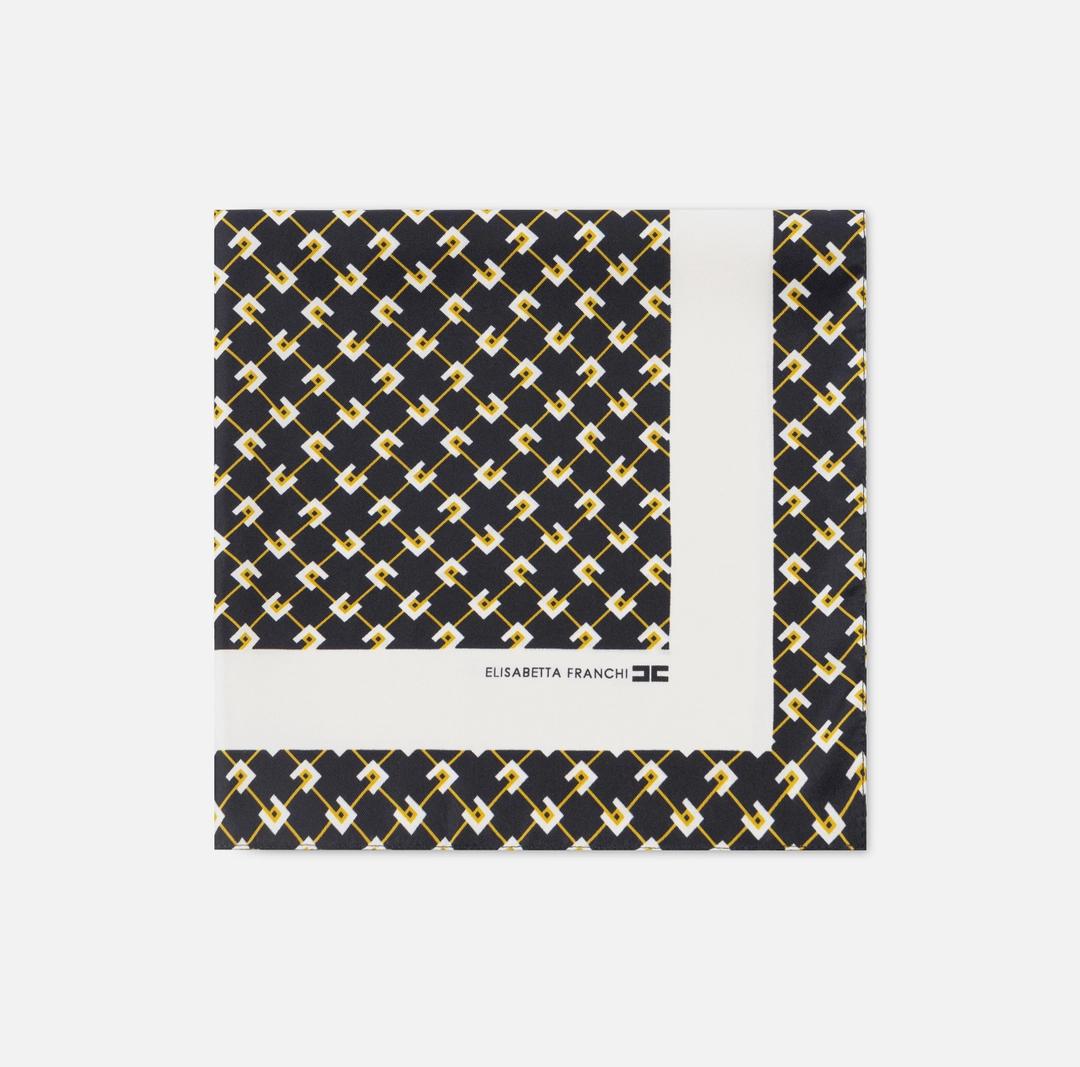 Eșarfă Foulard din twill de mătase, imprimată cu un model de diamante și bandă de culoare uni contrastantă.