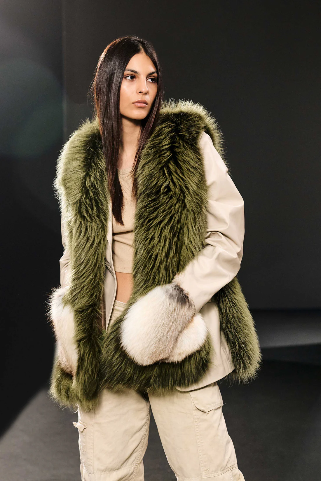 Adaugă un plus de eleganță și funcționalitate garderobei tale de iarnă cu geaca gilet Fanny Flo&Clo,, o piesă vestimentară de lux confecționată din blană naturală de înaltă calitate. Această vestă versatilă, de culoare militari, aduce un contrast subtil și modern, perfect pentru orice ocazie, de la ieșiri casual la evenimente speciale.