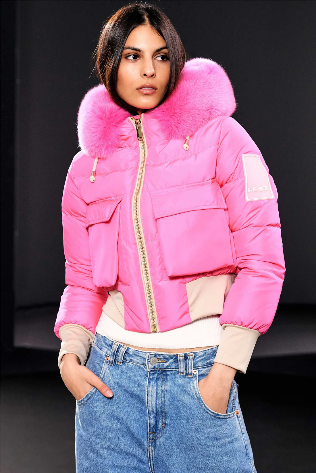 Alege să ieși în evidență cu Giaca Bombart de la Flo&Clo, umpluta cu puf natural de gâscă,o piesă vestimentară modernă și vibrantă. Confecționată dintr-o combinație inovatoare de tex și blană (fur), această jachetă oferă un echilibru perfect între stil și funcționalitate. Cu o culoare fuchsia strălucitoare, Giaca Bombart aduce un aer îndrăzneț și energic garderobei tale de iarnă.