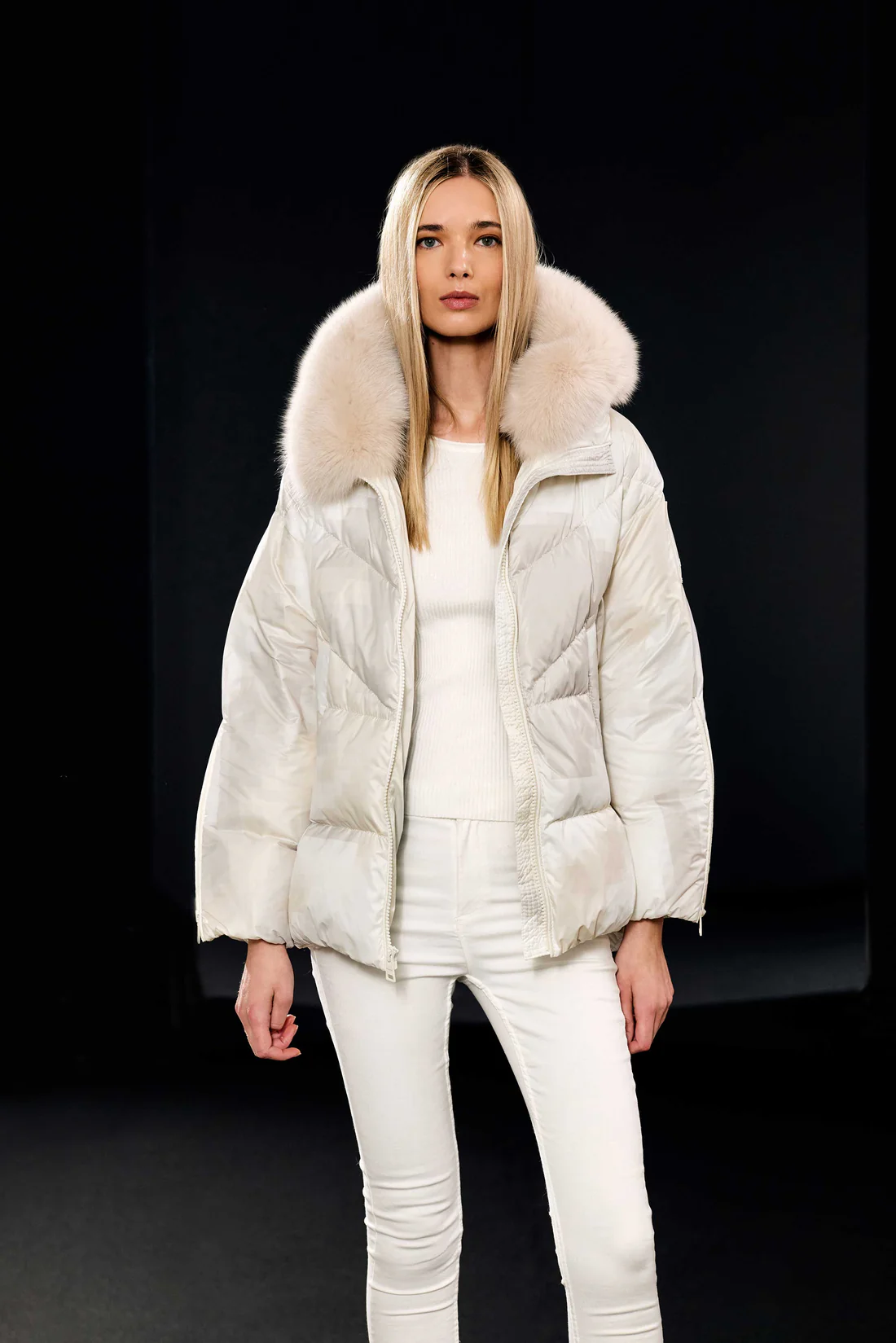 Descoperiți combinația perfectă între stil și confort cu Giaca Sissi de la Flo&Clo umpluta cu puf natural de gâscă. Realizată dintr-o combinație premium de tex și blană (fur), această jachetă oferă o estetică rafinată și un confort superior. Disponibilă în nuanța unică pixel latte (crem texturat), Giaca Sissi aduce un plus de eleganță oricărei garderobe de iarnă.