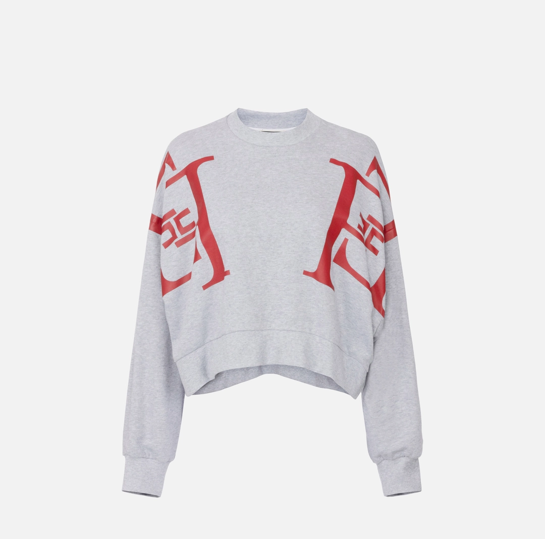 Hanorac din bumbac decupat. Are un maxi logo imprimat pe față și pe mâneci.