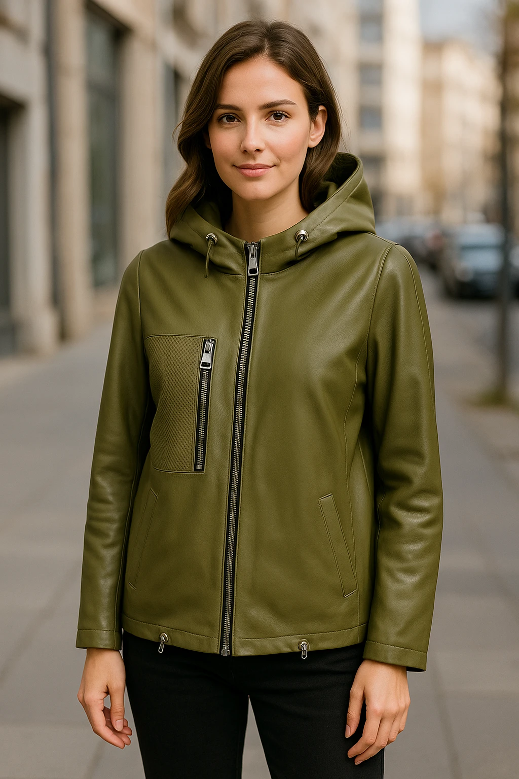 Jacheta din piele natural cu gluga