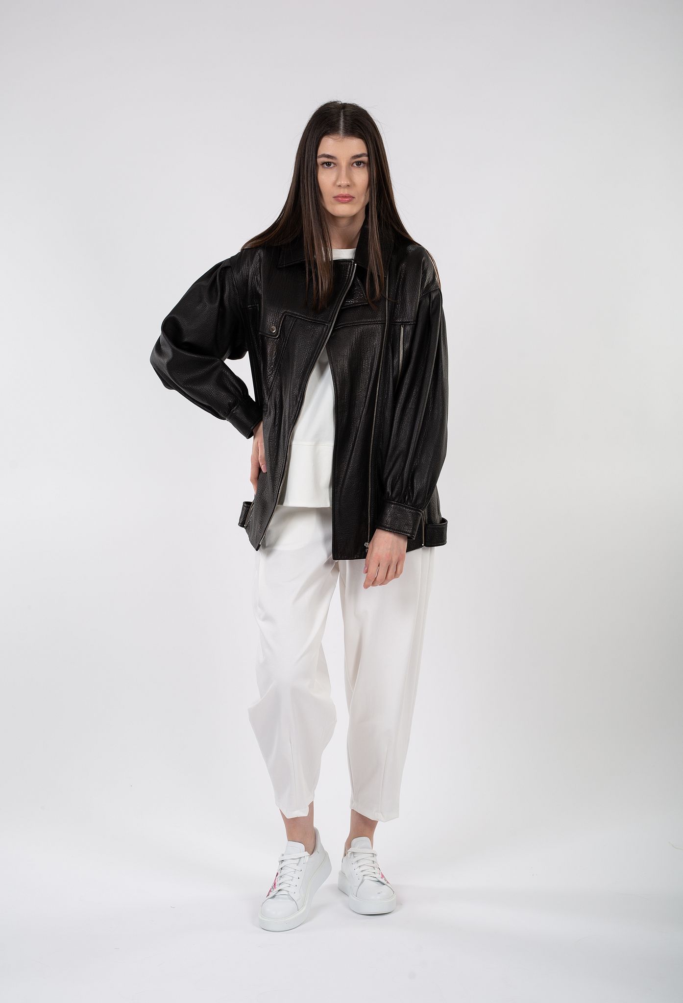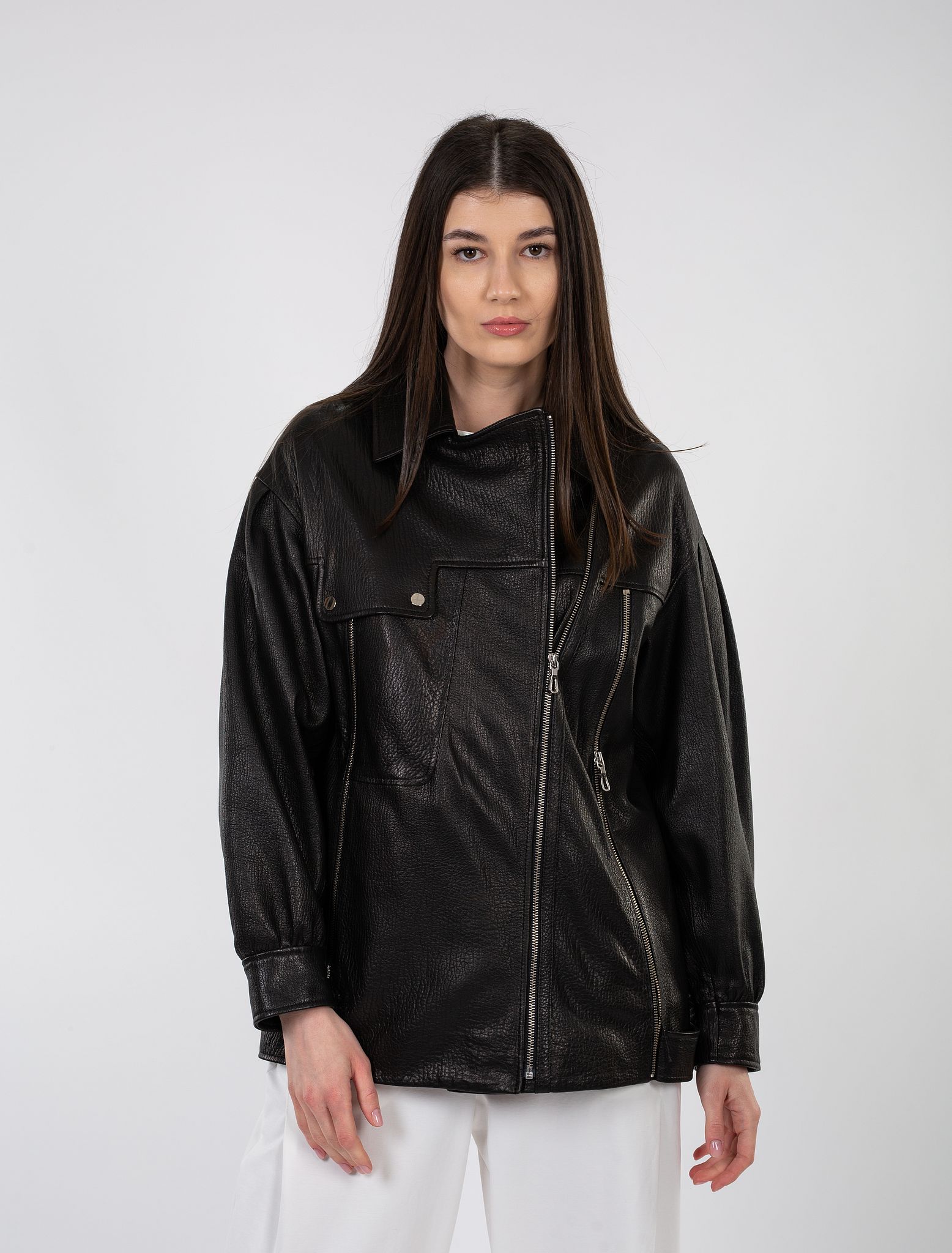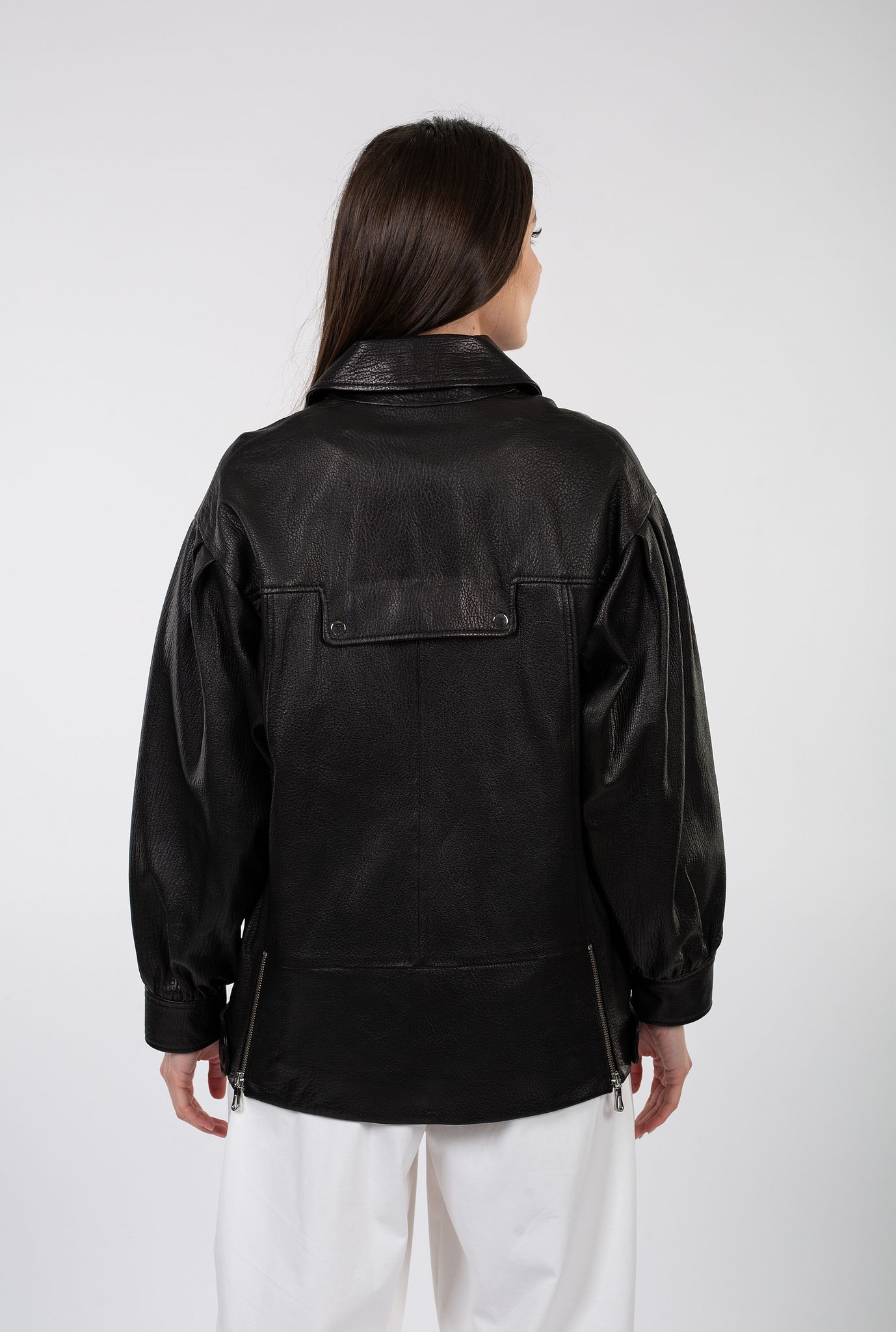 Jacheta din piele naturală cu mâneci bufante