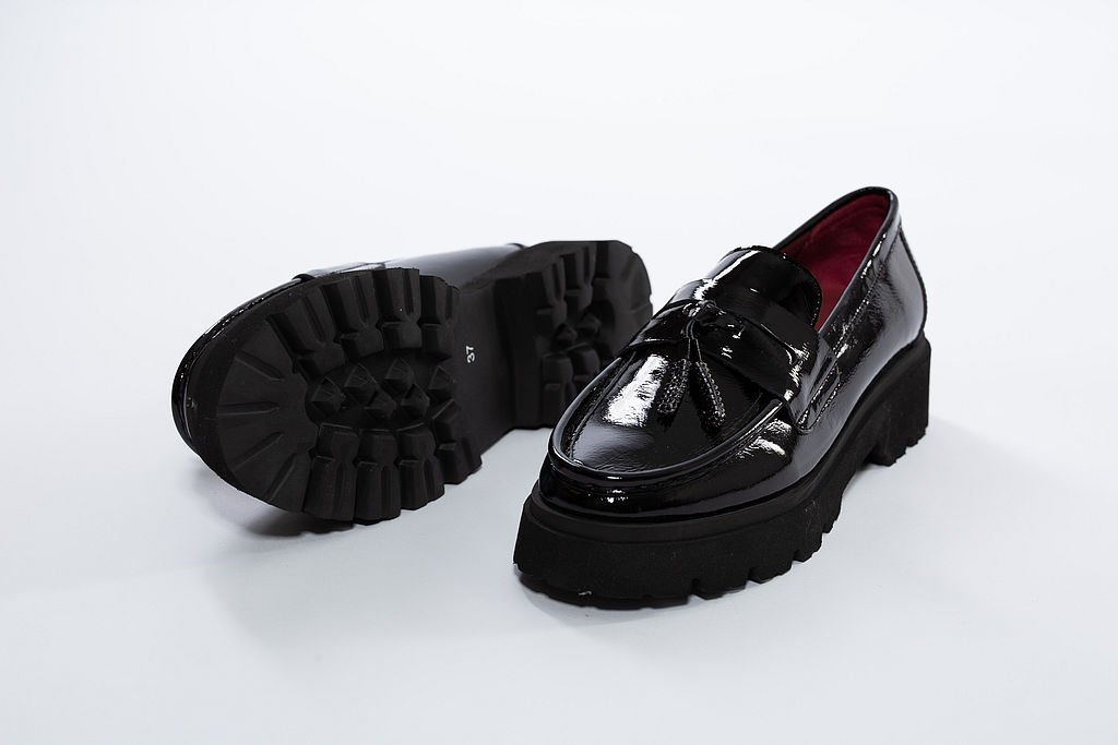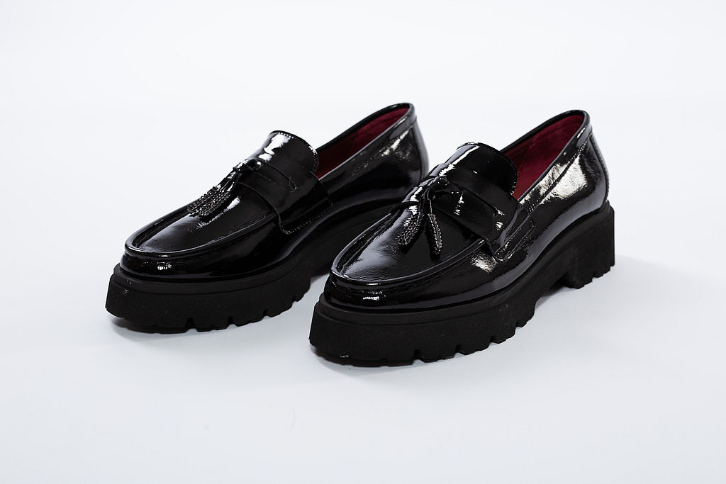 Designul lor clasic, cu detalii de tip franjuri și ciucuri, este modernizat de o talpă masivă, de tip platformă. Aceasta nu doar că adaugă un look contemporan și cool, dar oferă și un confort sporit și stabilitate pe durata întregii zile. Finisajul lucios al pielii lăcuite atrage atenția și adaugă o notă de rafinament.