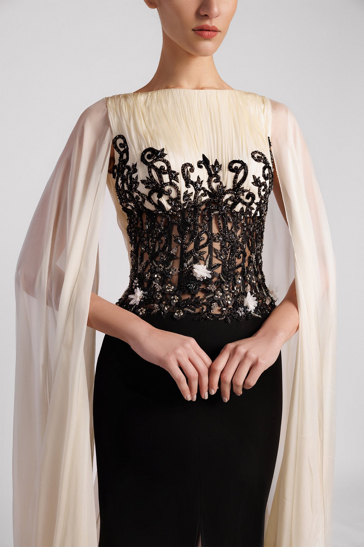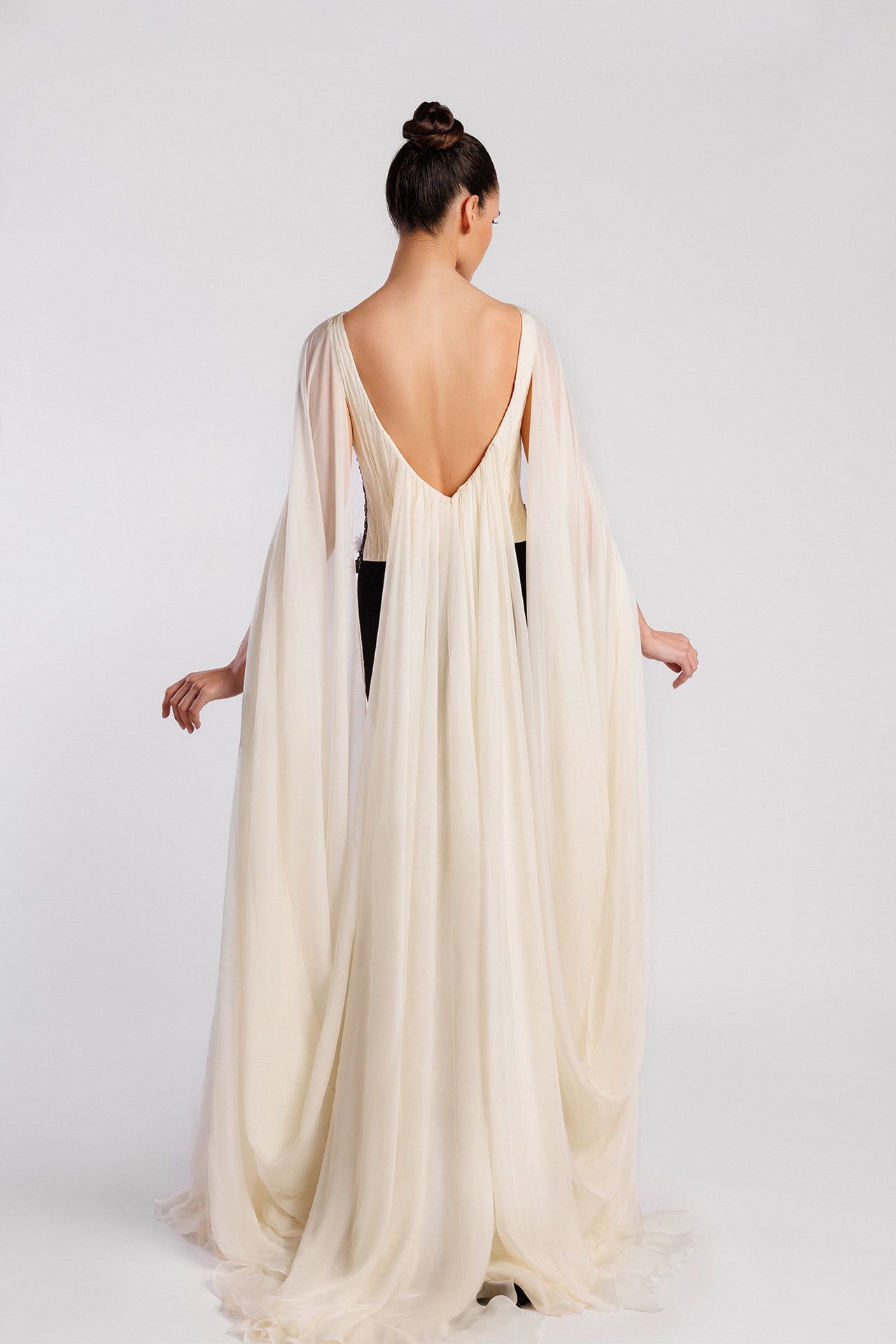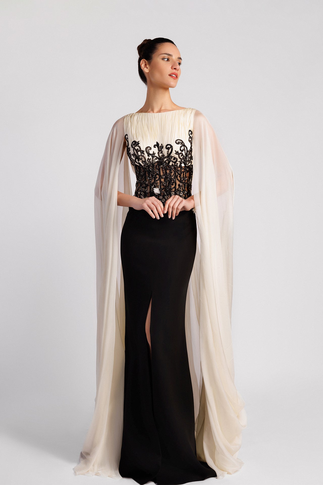 Rochie, Guler Bateau, Corset Brodat, Maneci Cape, Deschidere in Fata, Trena Watteau. – Brandul Gattinolli by Marwan aduce in prim-plan aceasta piesa realizata din materiale premium, intr-un design menit sa incante. Culoarea este cea din imagine, iar marimile disponibile sunt 32, 34, 36, 38, 40, 42, 44, 46, 48, 50, 52, si 54. Descopera cum aceasta rochie poate transforma orice moment intr-unul de neuitat, oferind eleganta si prestanta. Dupa ce comanda a fost plasata, va vom contacta pentru marimea dorita.